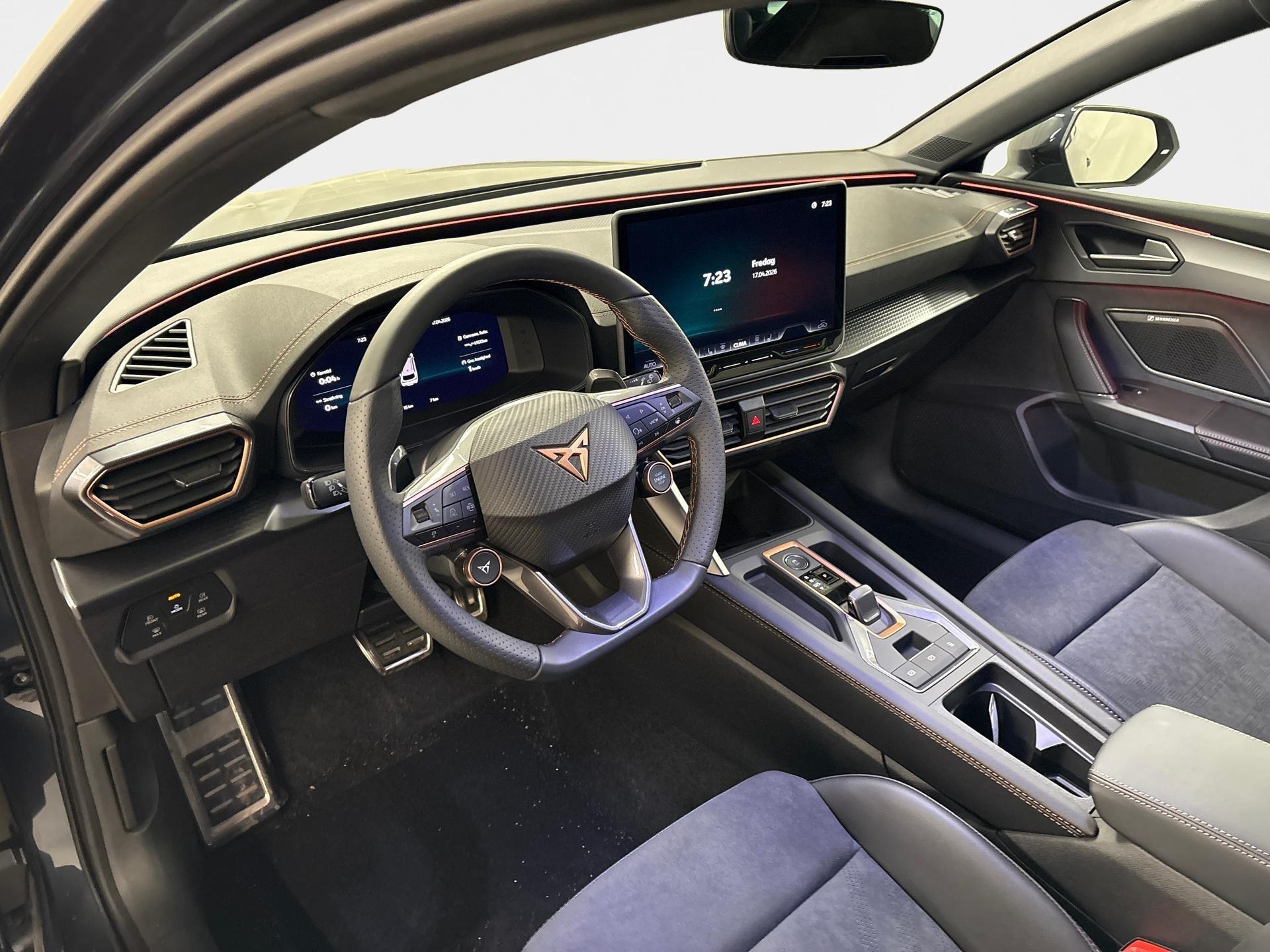 Innenausstattung CG - CUPRA Sportschalensitze vorne mit Sitzmittelbahn in Dinamica, Schwarz mit Blau Akzenten
